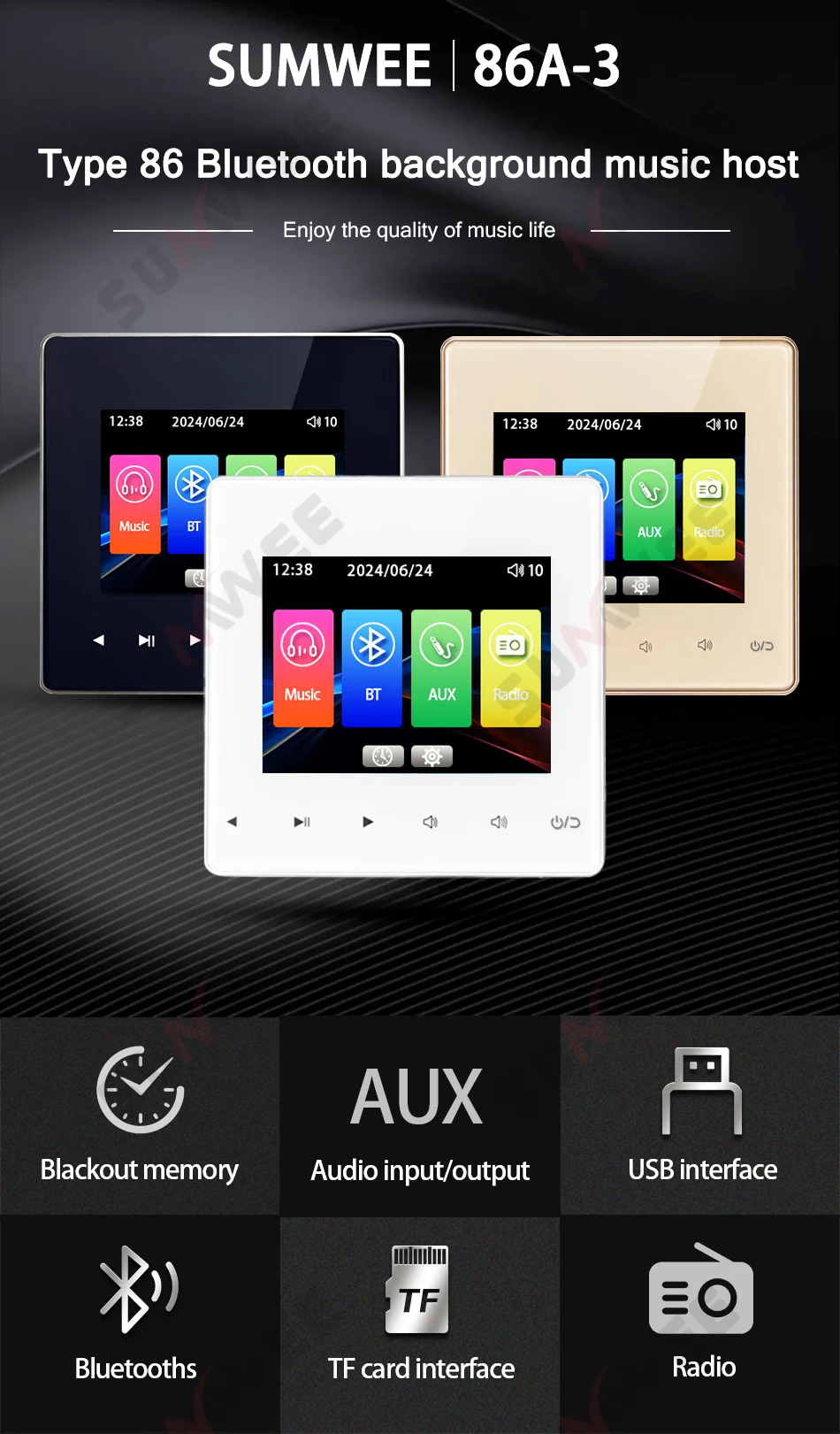 Installation: 86 standard wire box, front wall