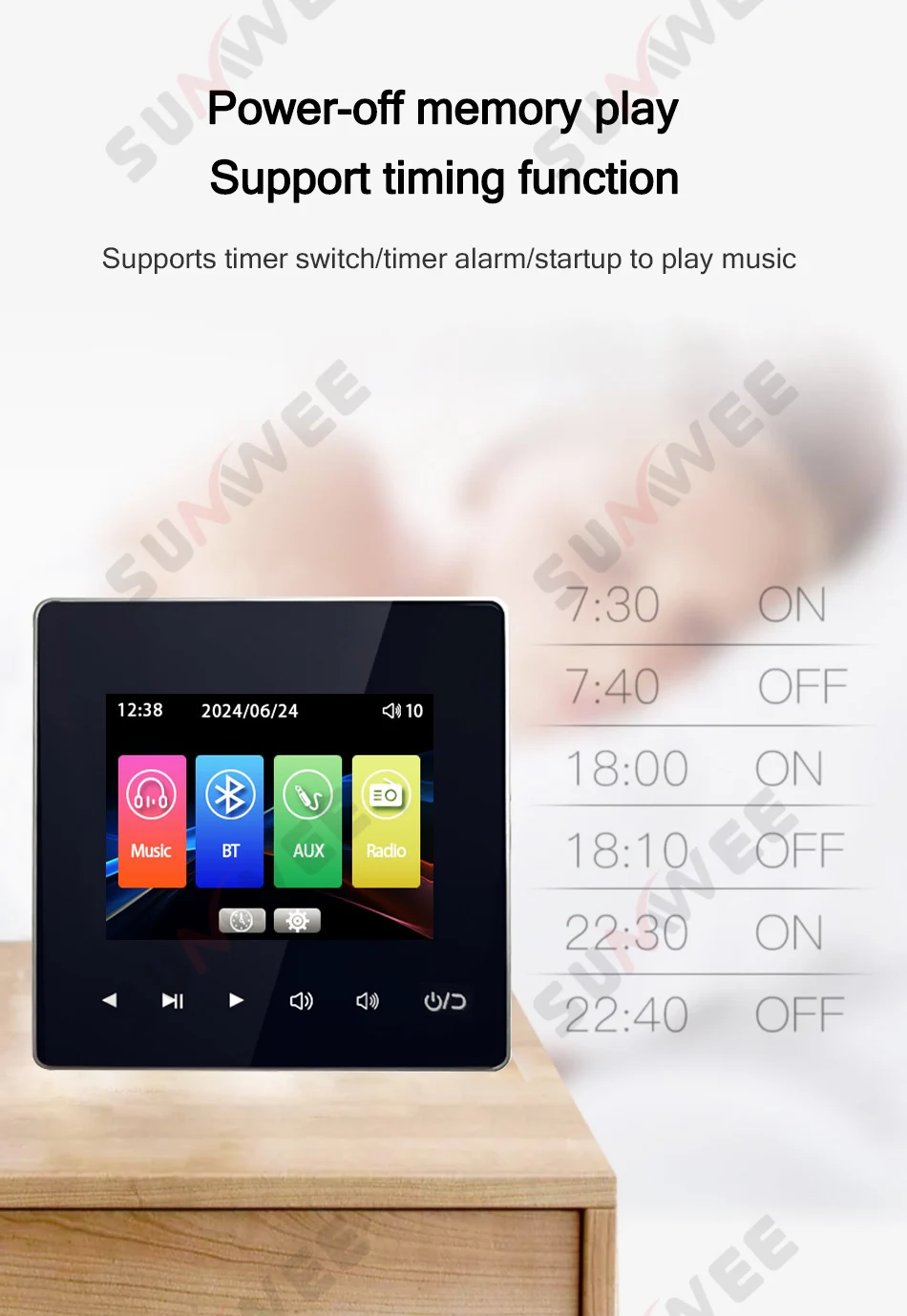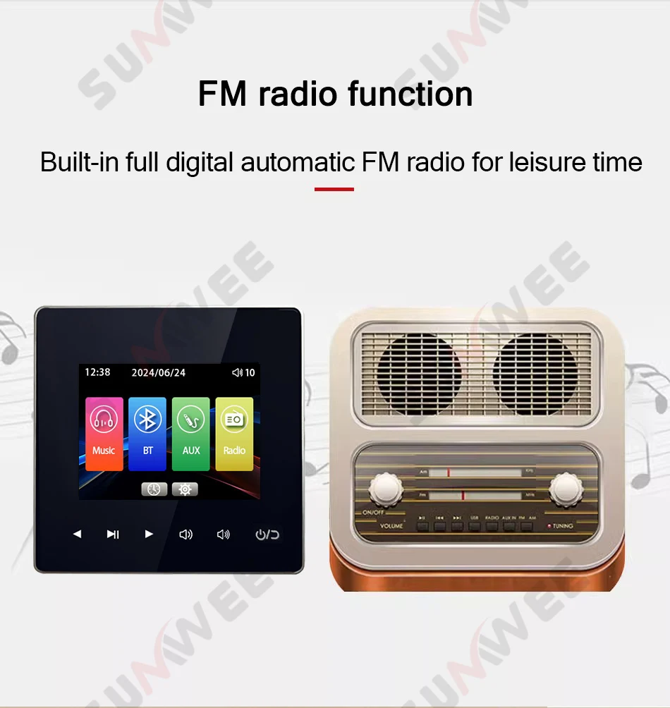 ●Support playback:USB, TF card,AUX,Bluetooth,FM Radio