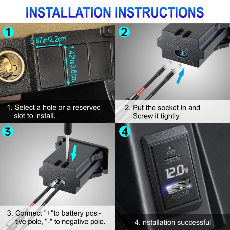 Suitable for most 12V-24V vehicles, such as boats, ATVs, RVs, trucks, etc