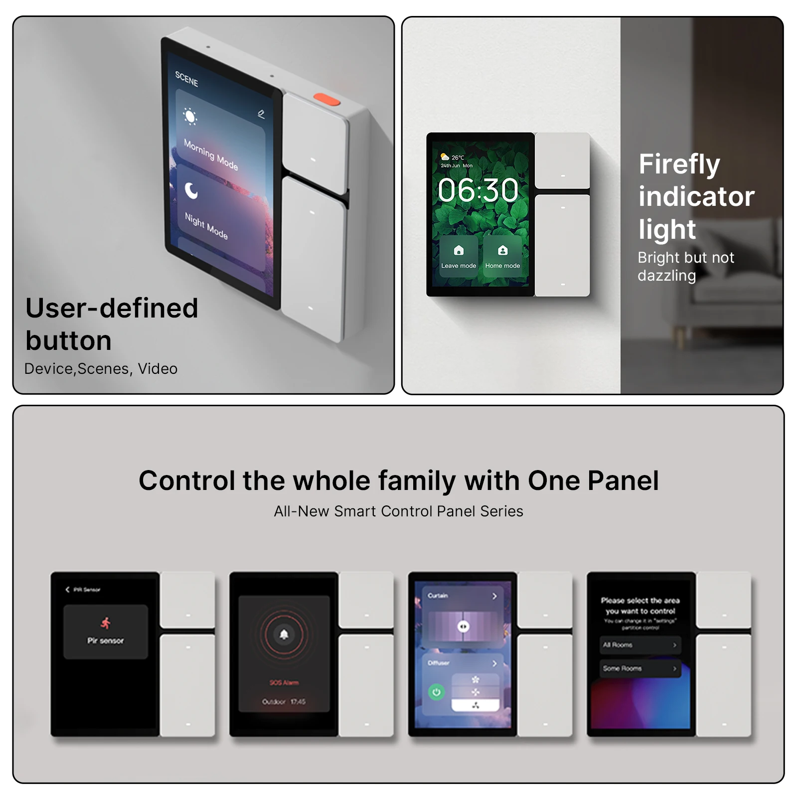 1. 【All-in-One Smart Panel】The smart control panel is compatible with a wide range of smart home devices, such as switches, light bulbs, sockets, cameras, air conditioner, thermosta, door locks and more. Supporting 200+ devices and scenes running stably. Truely meet your diversified and individual needs of controlling scattered devices in each room.
